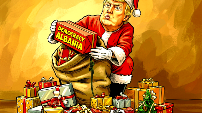 Vazhdojnë shqiptarët ëndërrojnë se demokracinë do ta sjellë Babagjyshi i Vitit të Ri! Për këtë sezon, “Santa” quhet Donald Tramp. Nuk është ndonjë habi, kur kujton se ngjarjet kyç të historisë sonë kanë ndodhur jo për vullnetin tonë, por të të tjerëve.