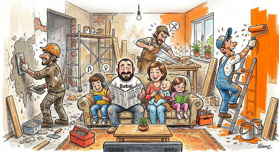 Mendoje veten si kjo familje: 36 vite vetëm “ndryshim”. Ustallarët suvatojnë ndërsa bojaxhinjtë lyejnë e marangozët sharrojnë, ngulin goxhdë e ngisin me tutkal…. Sa mbaron një dhomë shkepet tjetra. Ndërkohë në çdo kënd është dikush që “reformon”